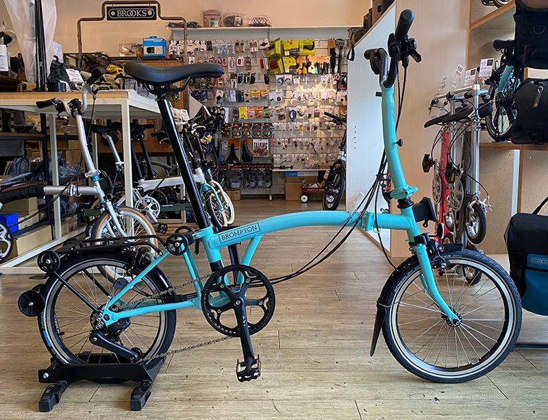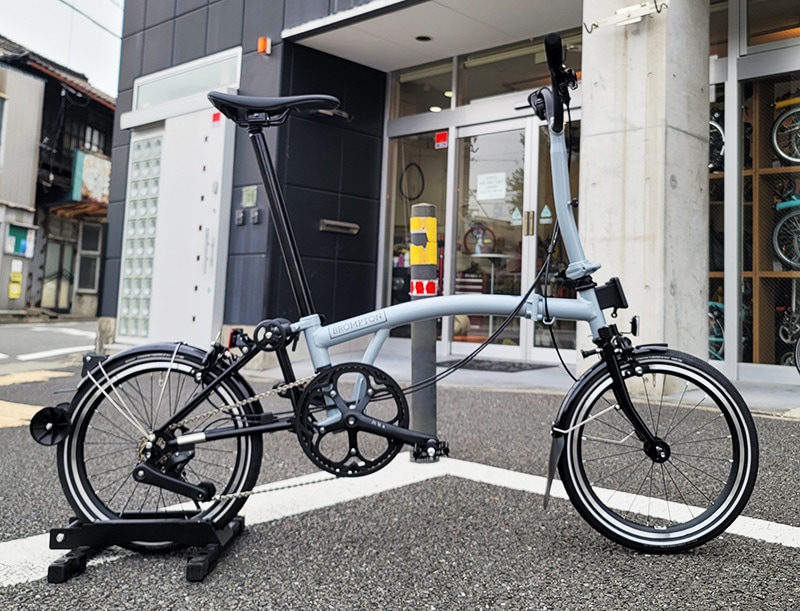 ブロンプトンらしいミドルハンドルを採用した12段変速モデル。ワイドなギアレシオがアップダウンの多い日本の市街地に適しています。リアキャリアの転がし性能もお試し頂けます。